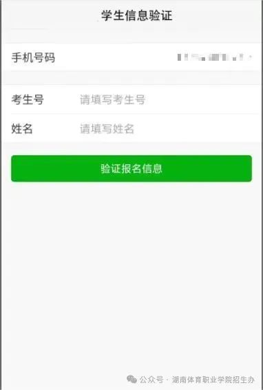 第三步:学生信息验证考生填写自己的考生号、姓名信息,系统验证考生信息是否正确,是否报考我校。