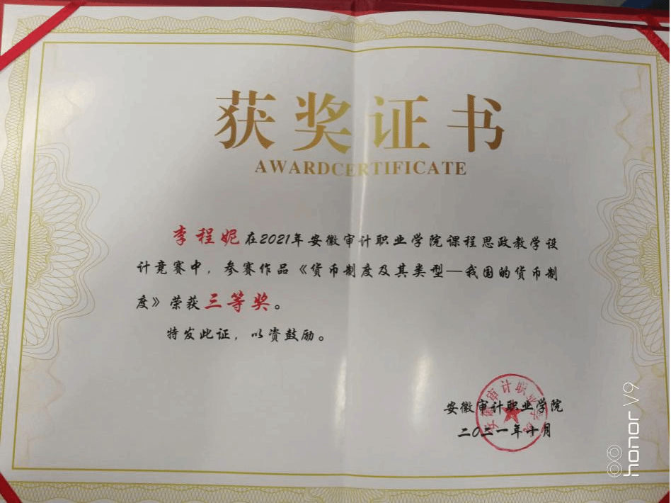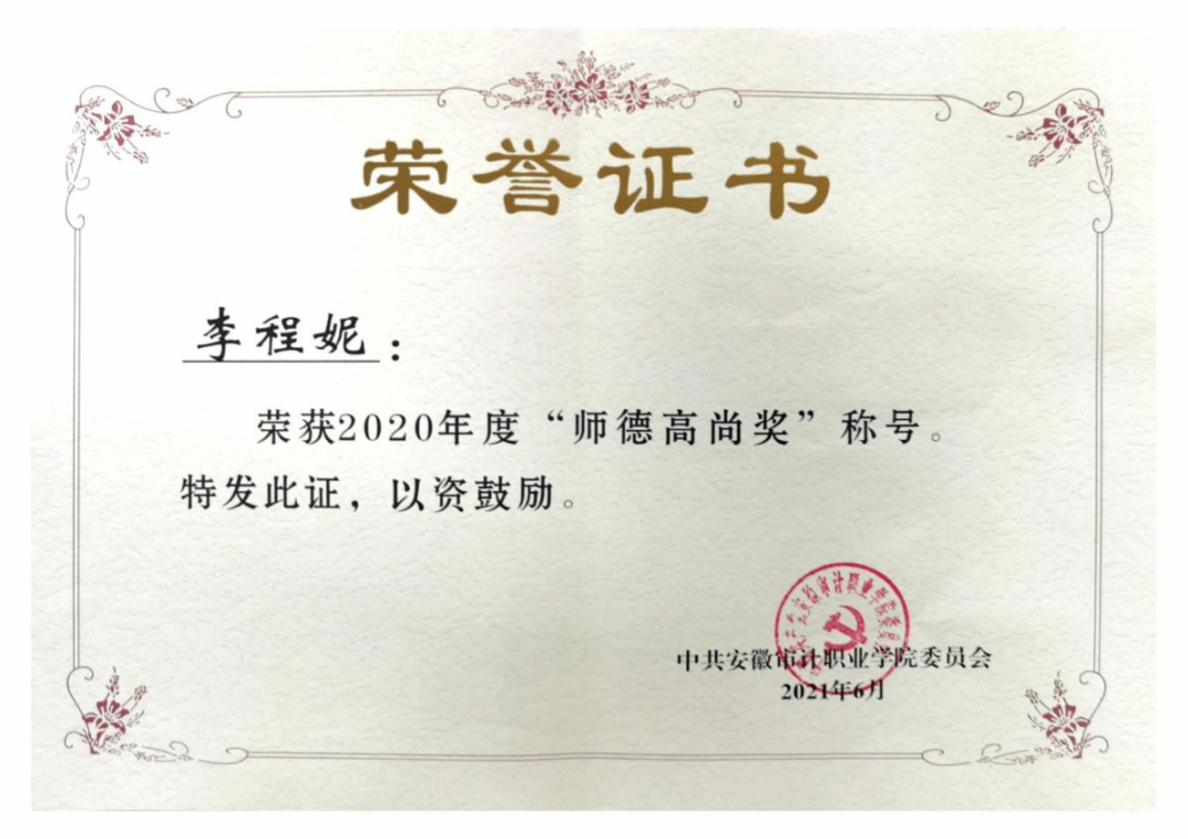 团队先后多人多次获得省级教坛新秀称号、厅级考核优秀、院级师德高尚奖、院级优秀党员等荣誉称号,获得获得省级教师教学能力竞赛三等奖1项,获得安徽省第六届校企合作典型案例征集和主题征文活动二等奖1项,获得学院“课程思政”优秀案例评选一等奖1项、三等奖1项,获得院级说课比赛一等奖1项,获得院级说专业比赛三等奖1项等诸多奖项。
