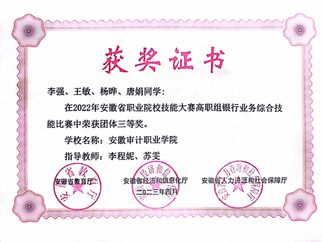 近年来,财富管理业学生参加安徽省大学生职业技能大赛共获一等奖1项,二等奖6项,三等奖3项;参加其他各类B级赛项获奖百余项。
