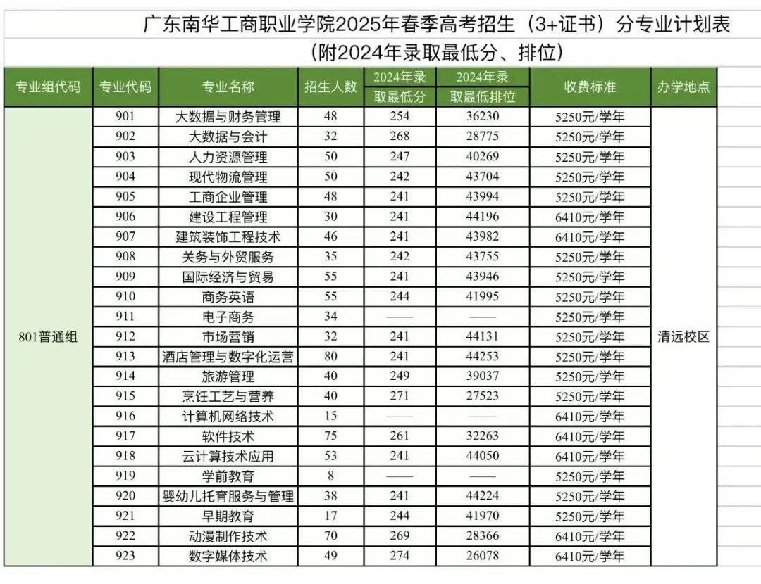 2025年我校春季招生计划
