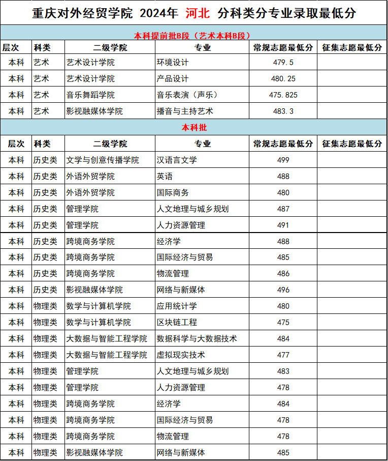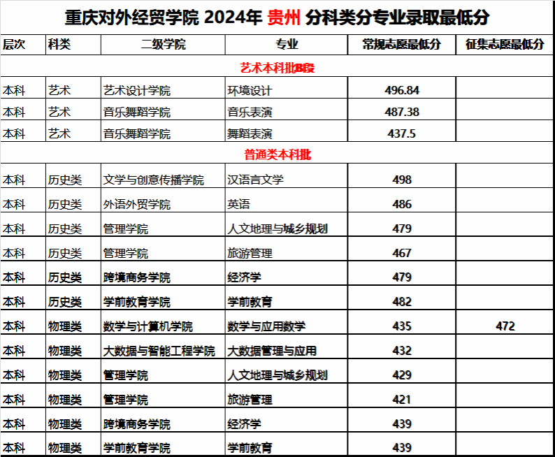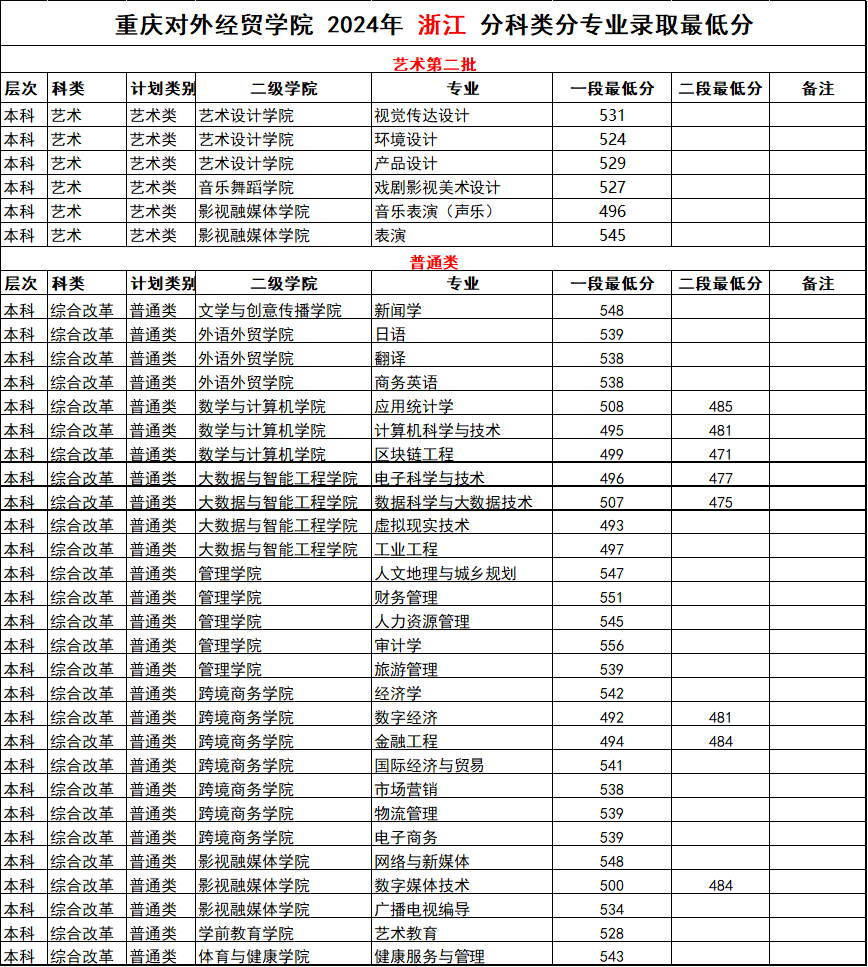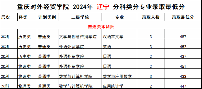重庆对外经贸学院2024年外省(市、区)录取分数