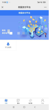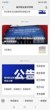 1.关注“宿州职业技术学院”微信公众号,在页面右下角“微宿职”菜单中选择“学生缴费”并登录。