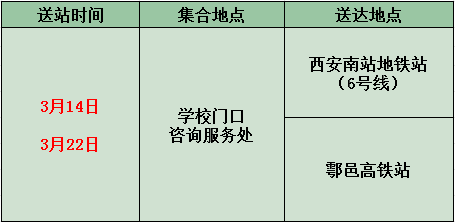 ①乘坐高铁到达“鄠邑站”,专车接站直达西安医专