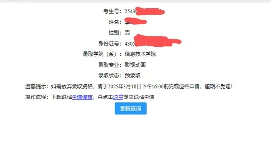 如需放弃预录取资格的考生请按照显示界面操作流程进行!若在规定的时间内未提交相关资料的考生默认为预录取!