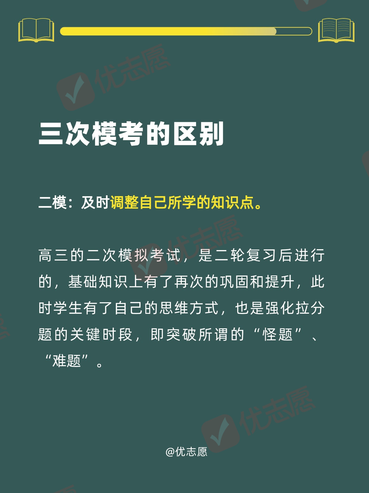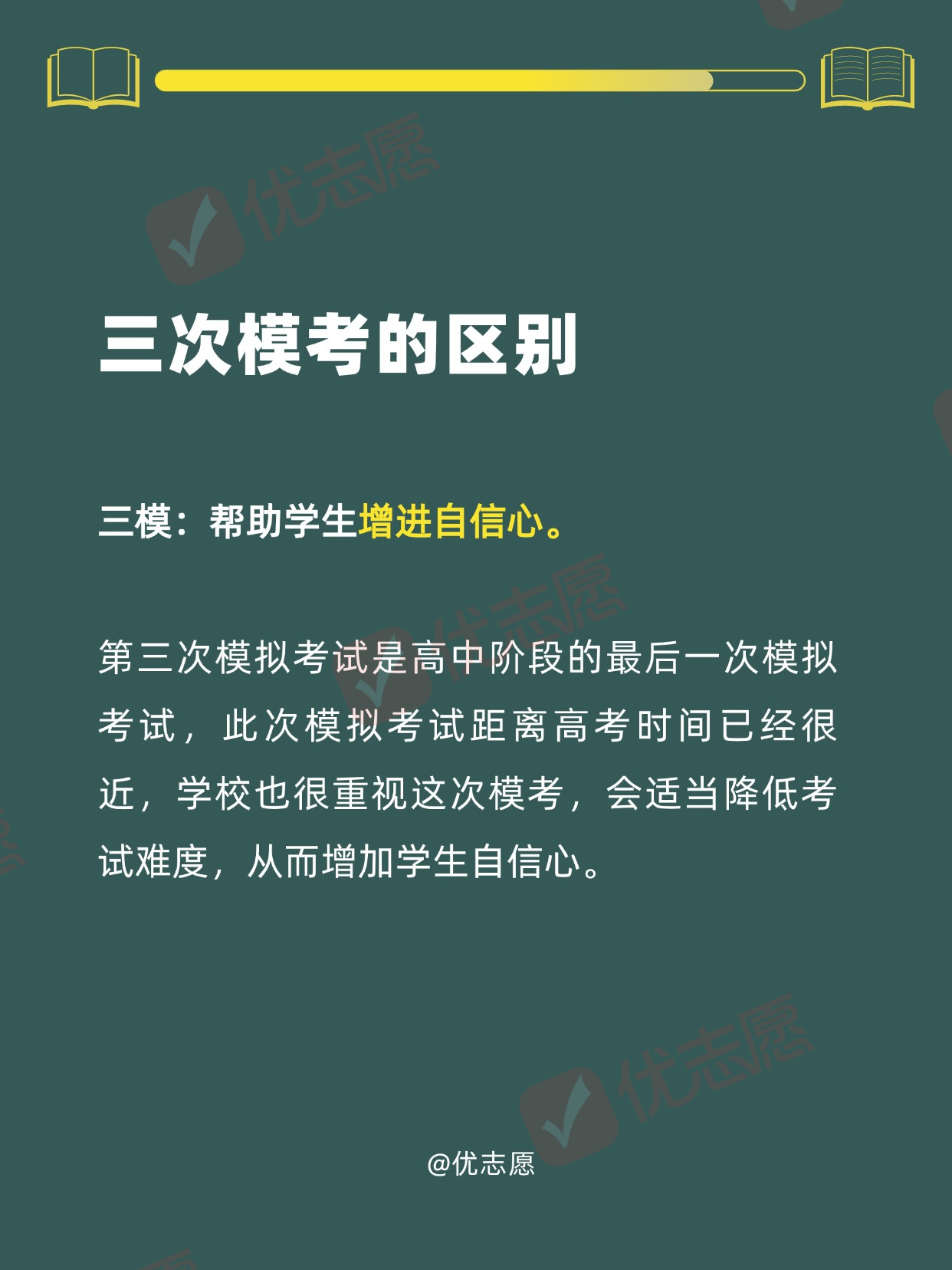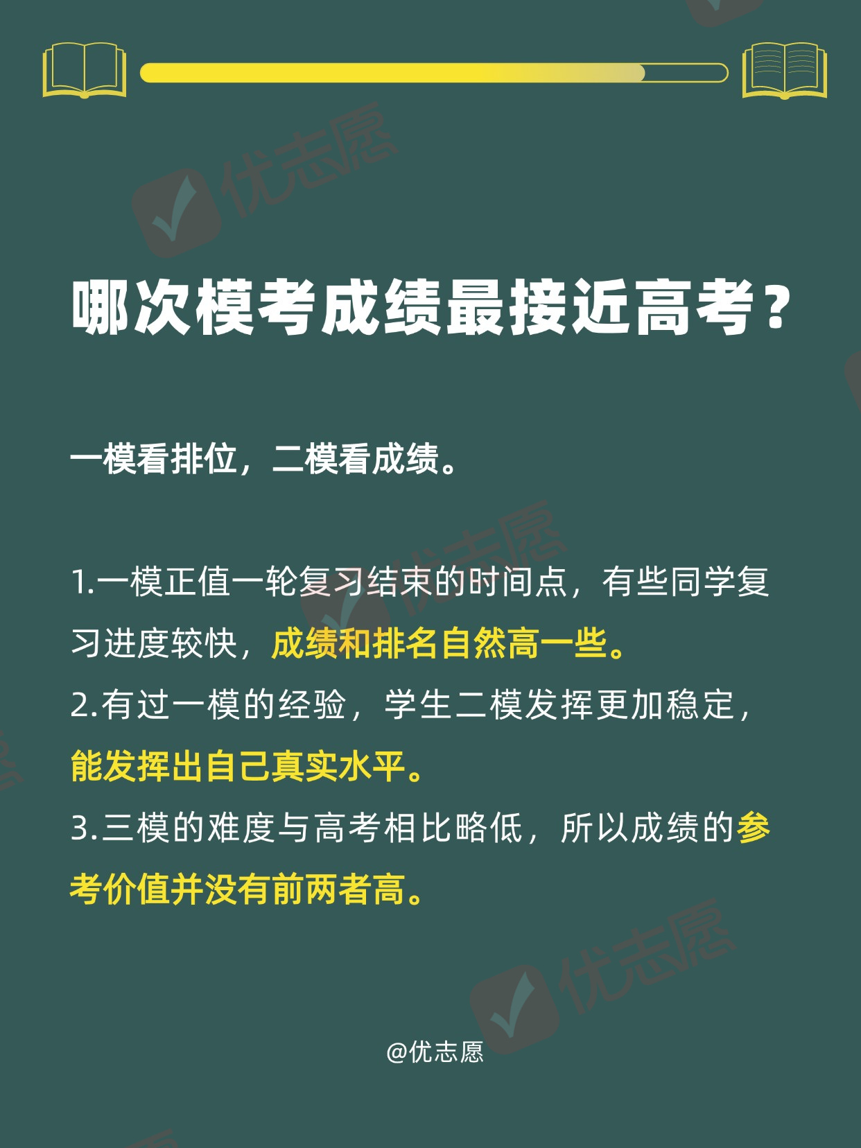 高三要经历三次重要的考试,分别是一模、二模、三模,这三次模拟考试不管是从出题难度,还是考试方式跟高考都很相似。三次考试有何区别?哪一次成绩最接近高考?一起了解!