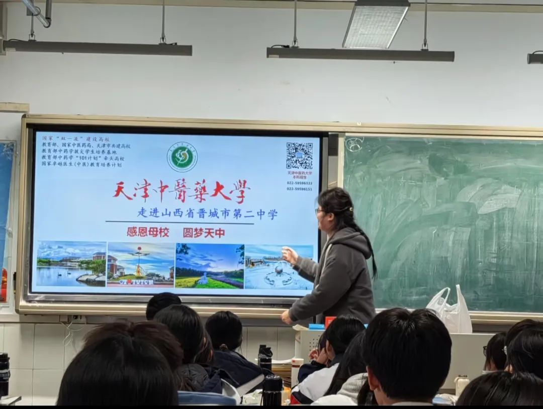 宣讲同学满怀热情地走进了山西省晋城市第二中学,开展了一场别开生面的宣讲活动。此次活动内容丰富,涵盖了学校的详细介绍、先进的教学设施、明确的选考科目要求以及高考相关的最新信息。宣讲者通过生动的讲解和详实的资料展示,向学生们描绘了天津中医药大学的辉煌成就和美好前景,旨在激发学生们的报考热情,吸引更多有志青年加入这所充满魅力的高等学府,共同书写未来的辉煌篇章。