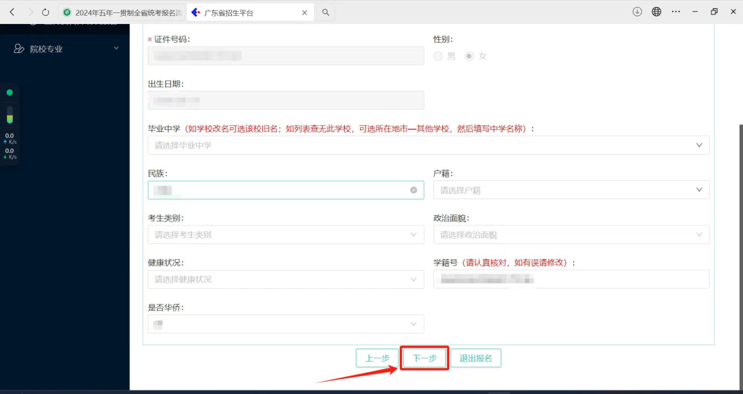 (二)按系统提示,如实填写考生本人(非家长)信息