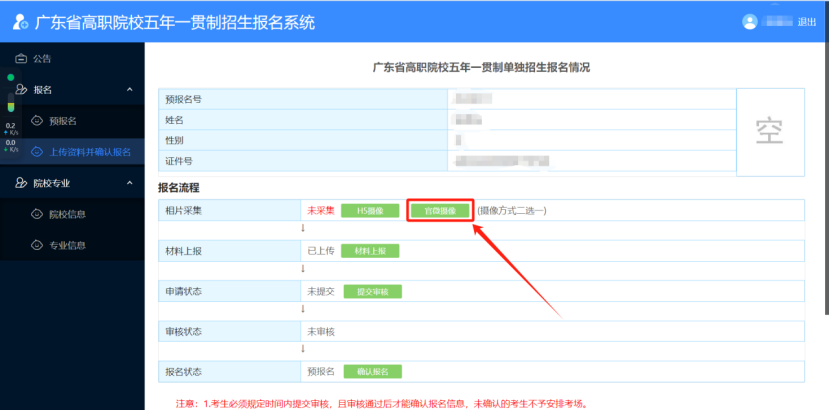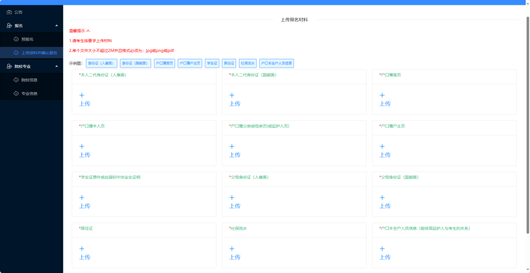 预报名考生材料上传注册