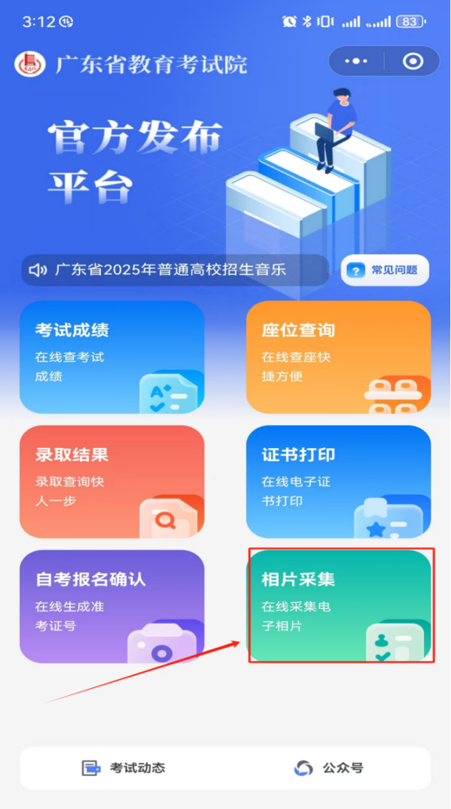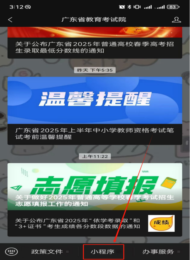 3. 进入“广东省教育考试院”微信公众号,点击下方小程序