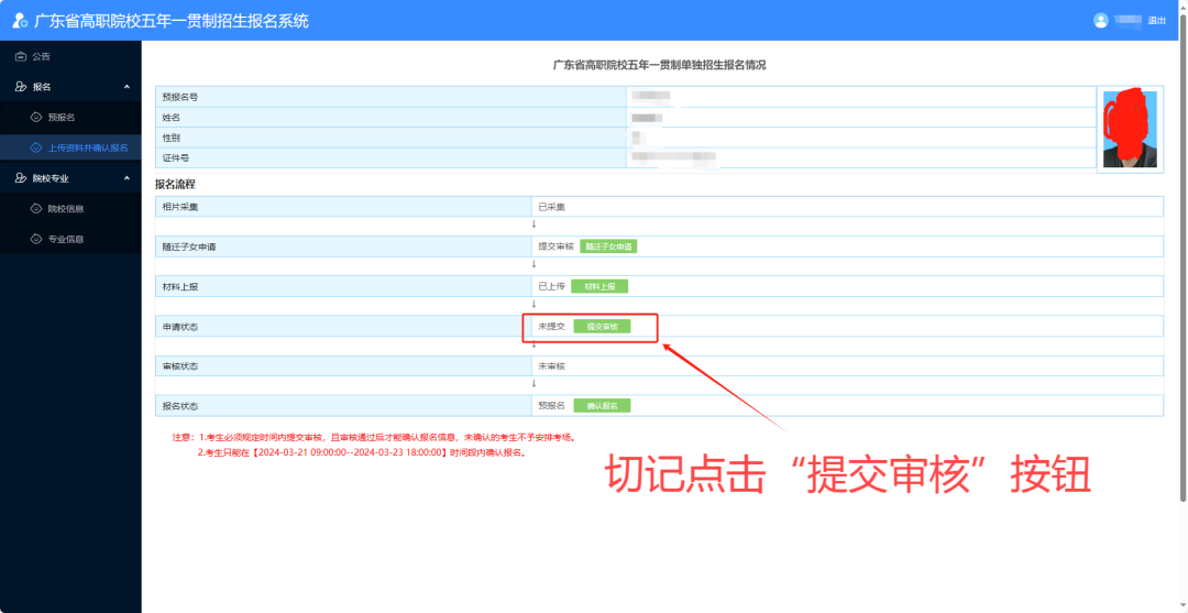 (四)提交审核,完成预报名流程