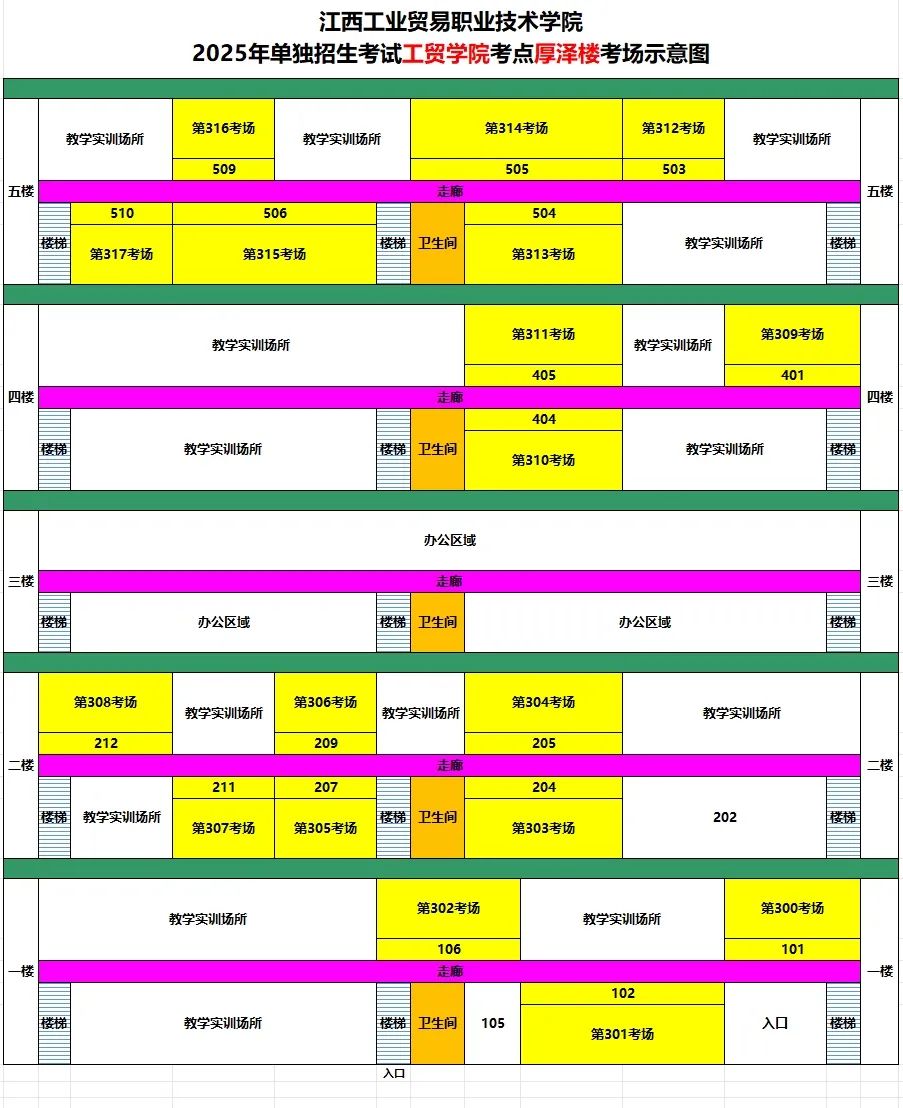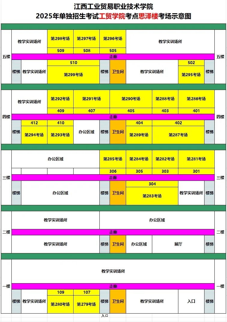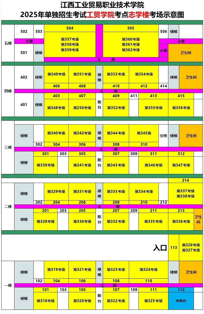 近期我们收到部分考生关于“提前查看考场”的咨询,因考点学校将于周六安排其他院校高职单招考试,故对周日(3月16日)参加考试的考生不开放提前查看考场。为帮助大家提前熟悉考场位置,学院现发布2025年高职单招考场分布示意图及专业测试(面试)注意事项。请所有考生仔细查阅本人所在考场的具体位置、楼层分布及入场路线。建议提前规划行程、熟悉考场周边环境,并携带好准考证、身份证等必备材料。