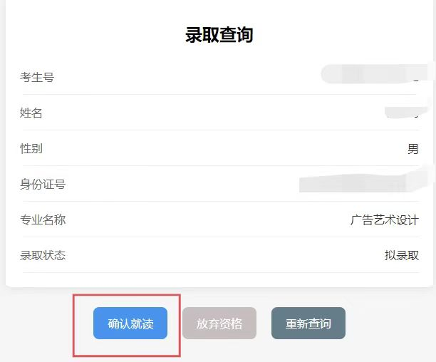 2.拟录取确认:点击“确认就读”进入拟录取确认就读页面,并按系统操作流程办理确认就读手续。