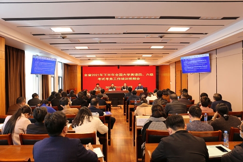11月30日,江西省教育考试院召开2021年下半年全国大学英语四、六级考务工作培训视频会议。省教育考试院党委委员、副院长沈华锦出席会议并讲话。全省各设区市教育考试中心(教育考试院)负责人、考务专干,各高校考点教务处负责人、考务管理员及省教育考试院相关处室工作人员230余人参加会议。