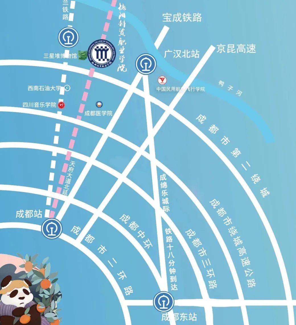 学校与“三星堆”作邻,处在成都半小时经济圈内,距广汉高铁站驾车约7分钟,从广汉北站乘坐高铁18分钟即可直达成都东站,地理位置优越,交通便捷,生活便利。