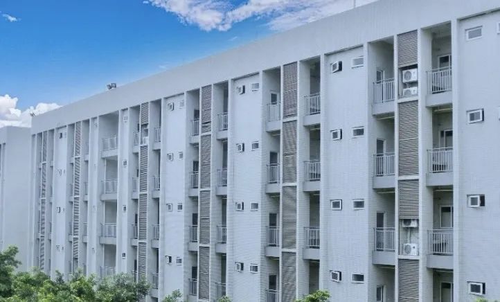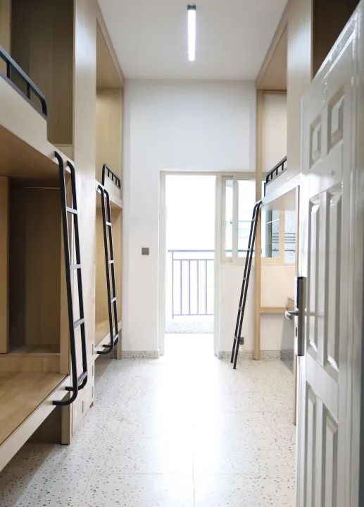学生宿舍为6人间的标准化大学生公寓,配备有空调、网络、书桌、书架、独立卫生间、淋浴、洗漱阳台独立衣柜、鞋柜等。同时,各楼层还设有学生自习室、洗衣房、24小时直饮水机,生活便捷。