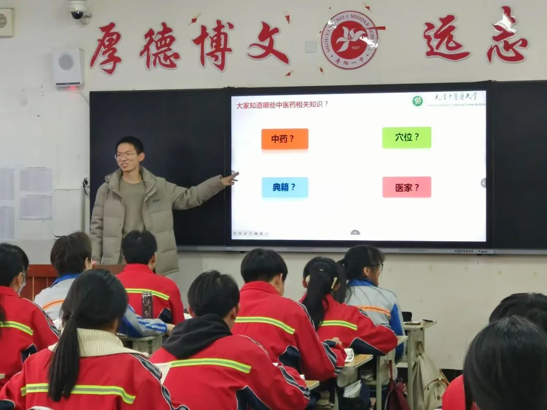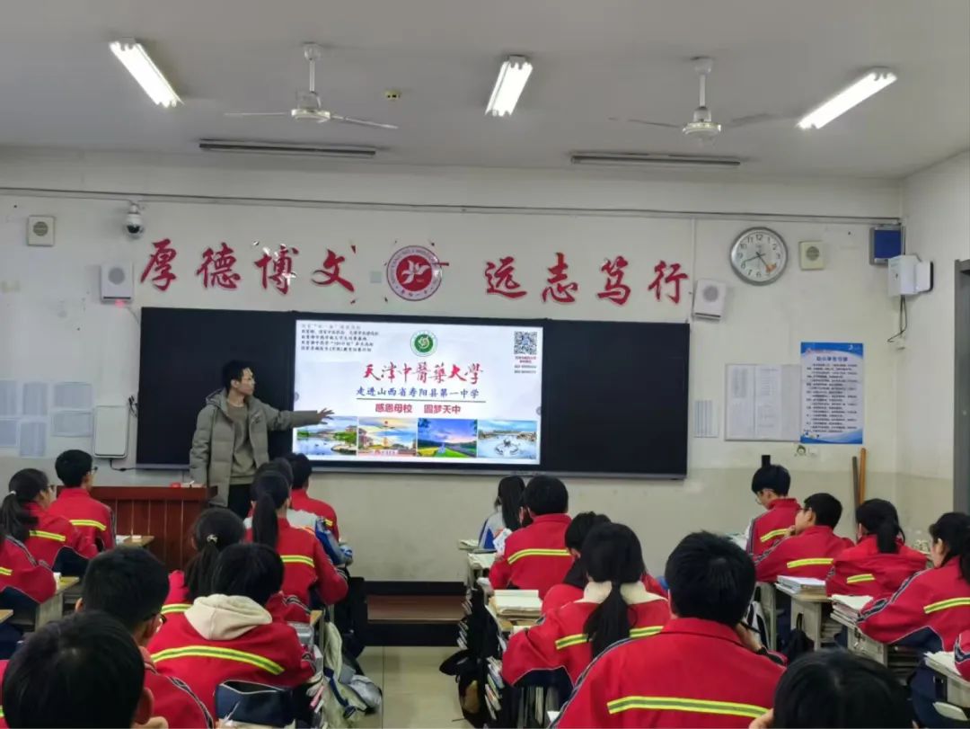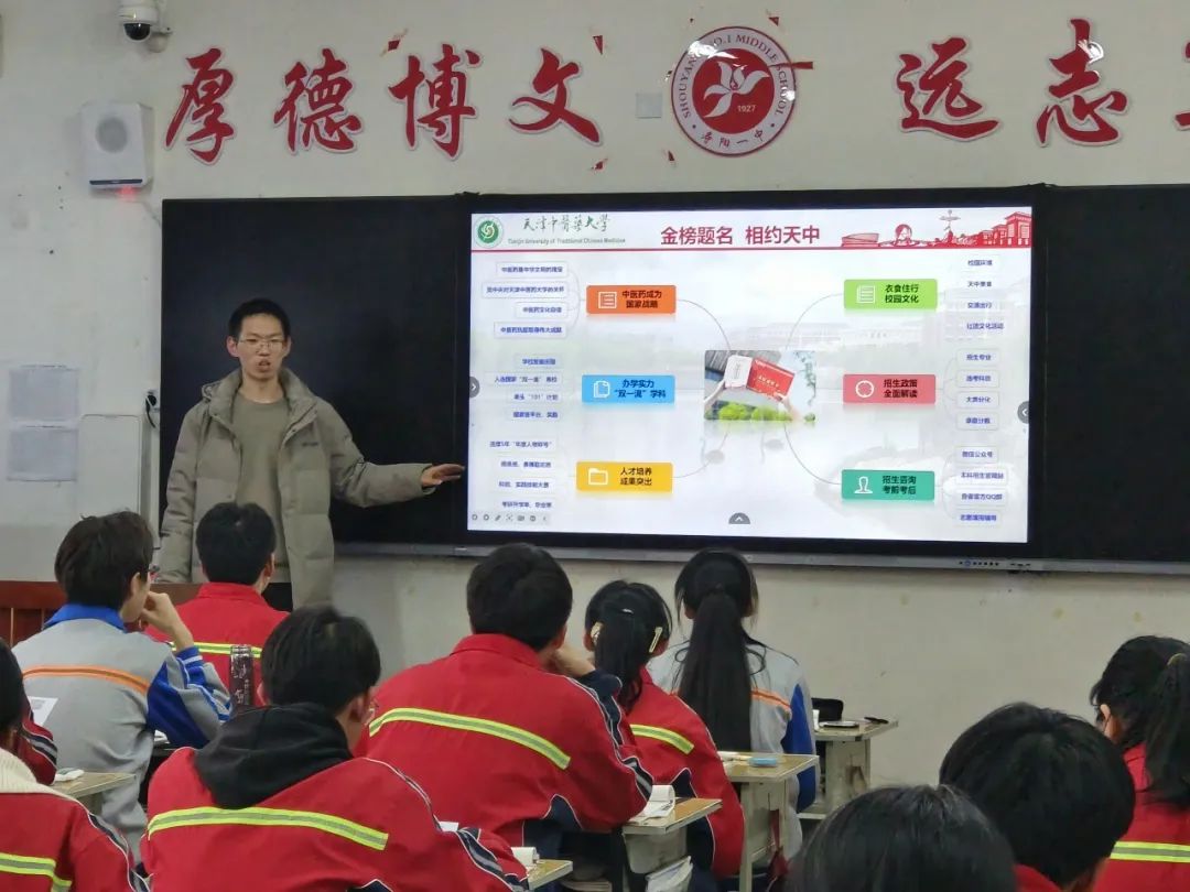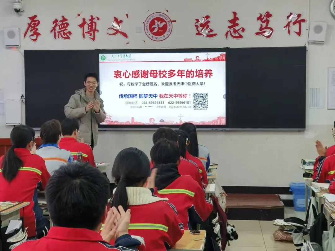 回到故乡母校,我们以天津中医药大学学子的身份向学弟学妹讲述岐黄文化,畅谈杏林春景,台下一道道专注的目光似乎穿越了时间的界限,恍惚间,我们仿佛看到了曾经的自己,我们以亲身经历解答同学们的专业困惑、分享我们的成长轨迹,在互动中传递着天中医“进德修业,继承创新”的校训精神。这场回访不仅是大学与高中的双向奔赴,同时见证了我们在大学的成长与蜕变,更让我们深切体会到宣传弘扬中医药文化的责任与意义。
