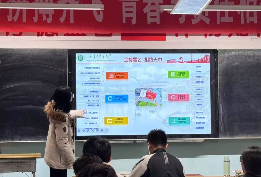 在宣讲会现场,学弟学妹们满是好奇与期待,眼神中闪烁着对未来的憧憬。随着PPT的播放,我分享着在天津中医药大学的学习生活,从独特的中医课程到丰富多彩的社团活动,先进的海河实验室,台下专注的目光紧紧相随。通过精美的PPT或视频,让学弟学妹们全方位了解天津中医药大学的多元面貌。