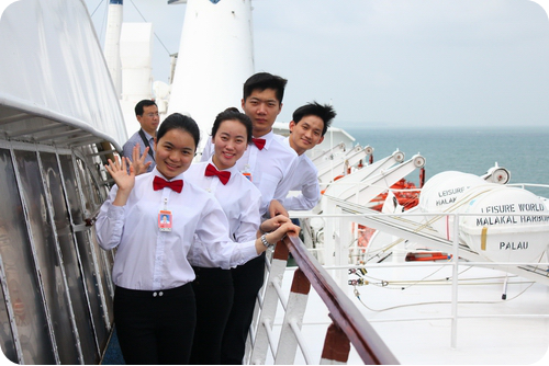2016级邮轮学子彭啸林曾就职于路易斯邮轮“奥林匹亚号”邮轮,又在丽星邮轮“双子星号”从事餐厅服务,现就职于“招商伊顿号”邮轮,职位是餐厅主管,薪资10000元。