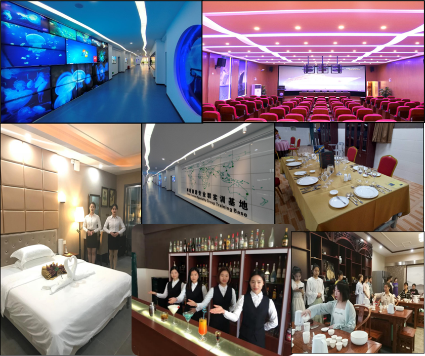 本专业拥有3D邮轮、邮轮客舱、中西餐、酒吧、茶艺等9个校内实训室,为专业实训课程的教学实施提供了保障。我校与天津海运职业学院皇家加勒比人才培训中心开展合作,为学生提供国际邮轮就业渠道。校外实习基地有中船舰客、招商局维京游轮有限公司、中国江苏国际经济技术合作集团有限公司、武汉长江轮船有限公司、武汉扬子江游船有限公司、武汉文旅集团等10余家合作企业,为学生实践教学提供了优越的实习环境和条件。