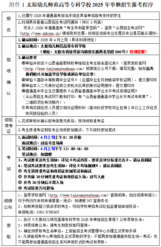 太原幼儿师范高等专科学校2025年单独招生报考程序
