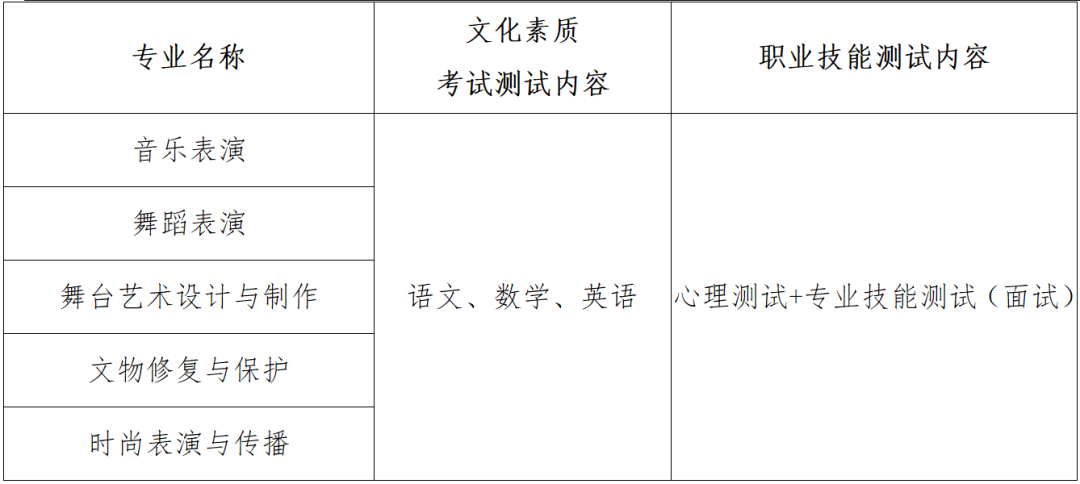 考试及录取方式此次高职单招招生考试采取“文化素质+职业技能测试”的模式,具体各专业考试方式见下表