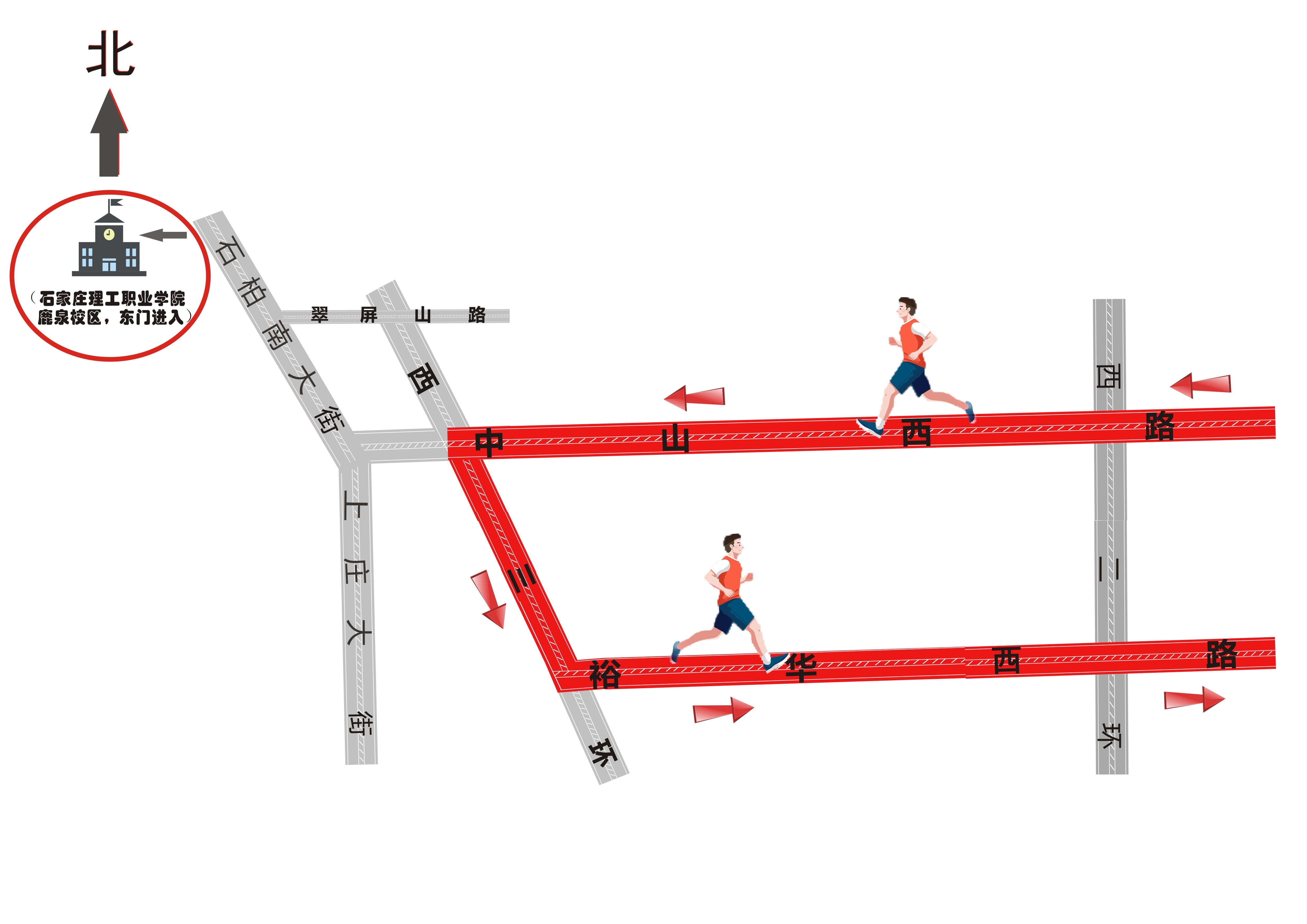 (二)3月30日上午(7:30开始),石家庄市将举办马拉松赛事,途径路段实行临时交通管制(即禁即停、即放即行),请考生尽量避开管制路段,提早赶往考点,或提前安排在考点附近住宿(住宿地点应避开马拉松赛区)。石家庄市马拉松赛路线图如下: