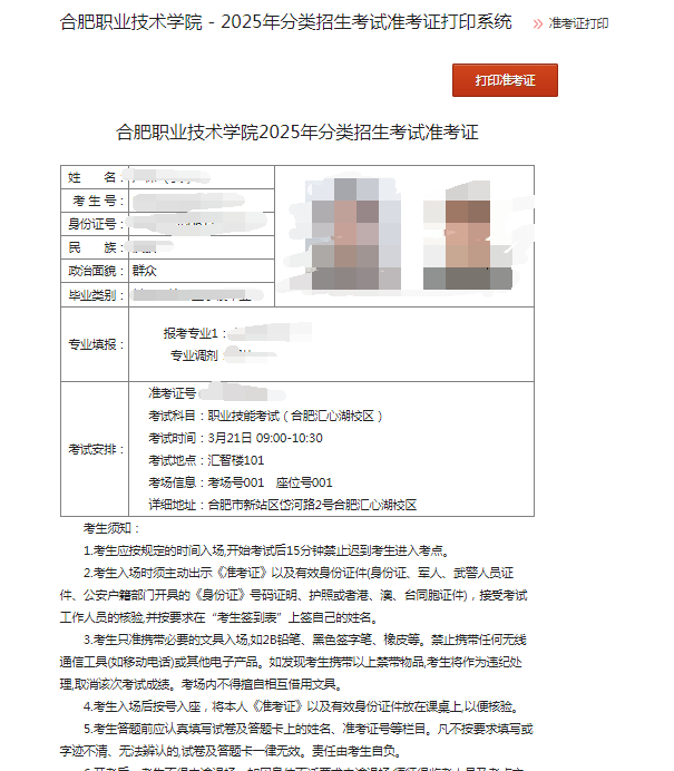 我校校考准考证打印系统现已开放,请广大考生于3月20日16:00前,完成准考证打印。