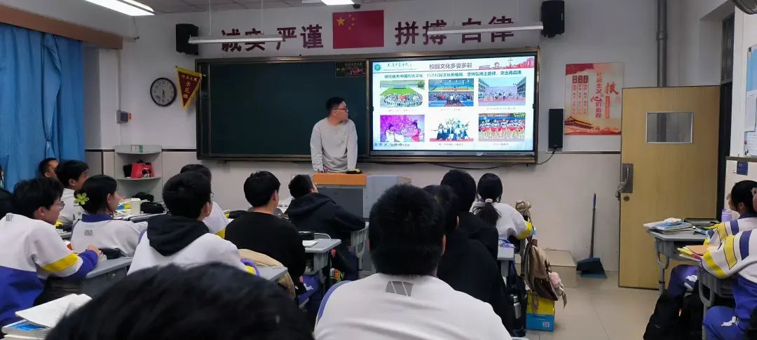 此后,由王琮淏同学向同学们介绍了大学生活的一些注意事项以及志愿填报的一些相关要领,并着重介绍了天津中医药大学所获得的成就、校园生活的一些特色以及学校历年的招生政策及录取分数线。