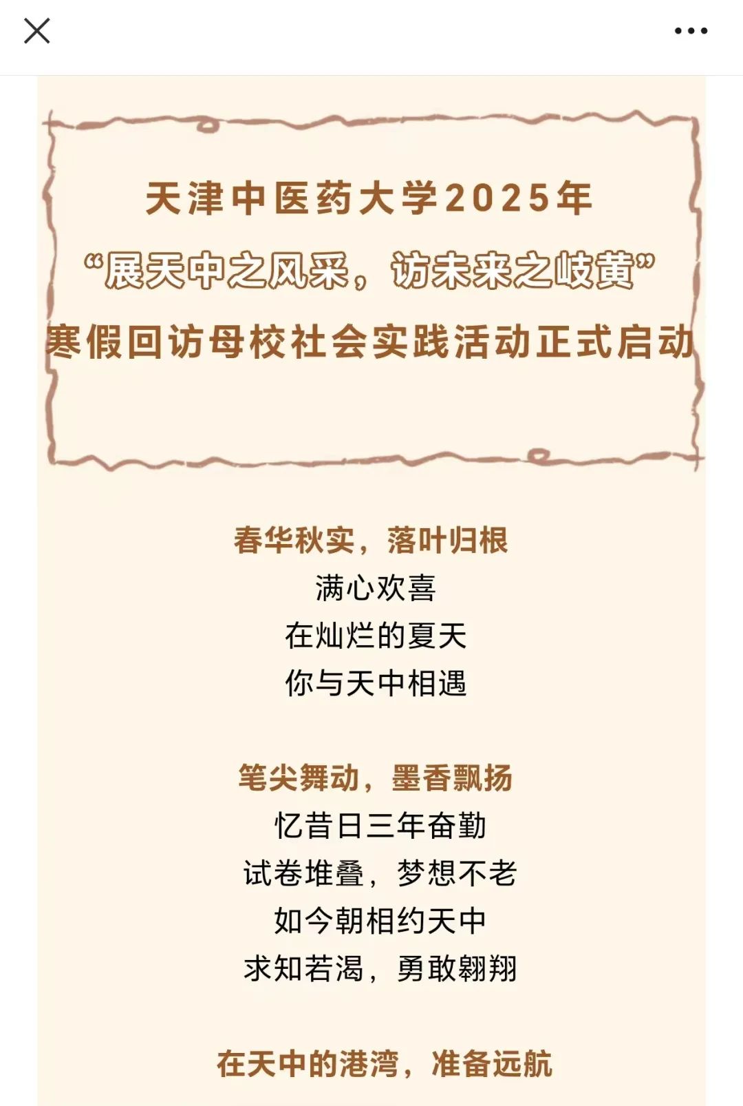 来源 | 天津市滨海新区大港油田实验中学回访母校团队2025年回访高中母校活动往期回顾01.走进甘肃省兰州市第一中学02.走进天津市宝坻区第四中学03.走进天津市宁河区潘庄中学04.走进天津市第一中学滨海学校05.走进华东师范大学盐城高级中学06.走进甘肃省天水市第一中学07.走进河南省嵩县第一高级中学08.走进广东省揭阳市第一中学09.走进甘肃省渭源县第一中学10.走进广东省东莞市实验中学11.走进河南省安阳市内黄县第一中学12.走进吉林省白山市抚松县第一中学13.走进山西省平遥中学14.走进河北省内丘中学15.走进天津市第二南开中学16.走进内蒙古呼和浩特市第一中学17.走进四川省达州市耀华中学18.走进广西玉林高级中学19.走进广西梧州高级中学20.走进山西省晋城市第二中学21.走进河北省承德县第一中学22.走进天津市天和城实验中学23.走进河北省冀州中学24.走进安徽省芜湖市第一中学25.走进安徽省蚌埠市第二中学26.走进河北省石家庄第二实验中学27.走进山西师范大学实验中学28.走进云南省昭通市昭阳区第一中学29.走进河北省玉田县第一中学30.走进山西省灵石县第一中学31.走进山西省长治学院附属太行中学32.走进山西省太原市第四十八中学33.走进内蒙古巴彦淖尔市第一中学34.走进内蒙古鄂尔多斯市一中35.走进山西省寿阳县第一中学36.走进河北省沧州市第一中学37.走进天津市咸水沽第一中学38.走进河南省焦作市温县第一高级中学39.走进河南省清丰县第一高级中学40.走进河南省开封高级中学41.走进天津市静海区第一中学42.走进天津市宝坻区第一中学43.走进天津市第四十二中学44.走进天津市杨柳青第一中学45.走进天津市新华中学46.走进甘肃省白银市会宁县第四中学47.走进甘肃省张掖市第二中学48.走进河北省衡水市第二中学49.走进河北省武邑宏达学校50.走进河北省清河县志臻中学51.走进河北省定州市李亲顾中学52.走进新疆乌鲁木齐市第101中学53.走进广西桂林市第十八中学