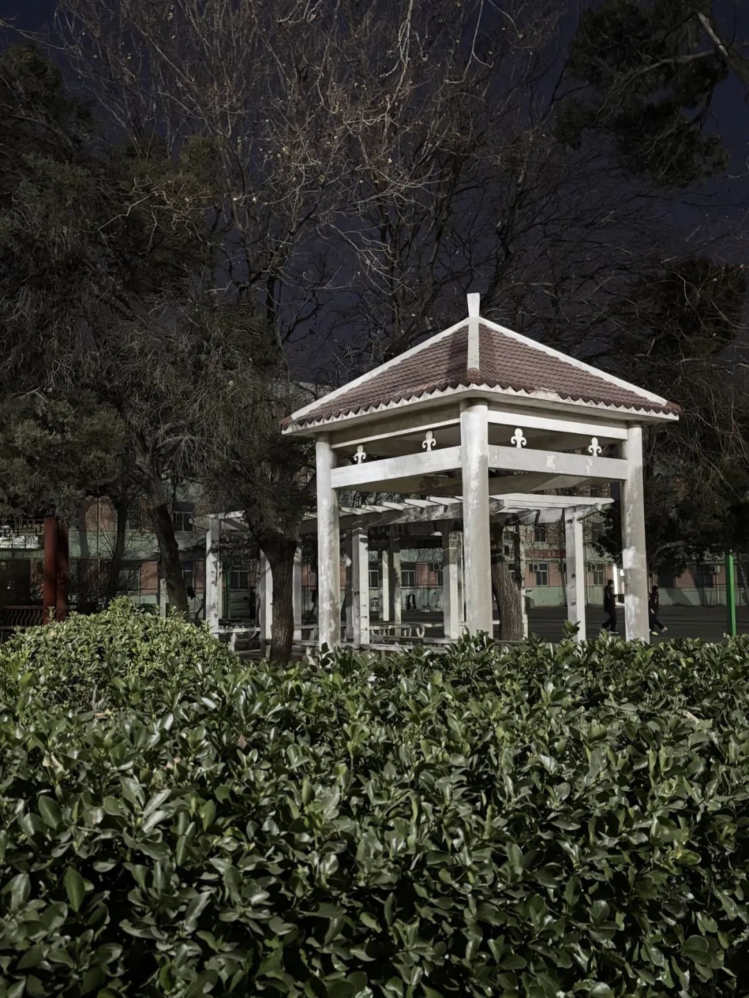 主楼后面有树龄达600多年的桧柏、100多年的槐树、近百年的皂荚树,这些古树是学校发展历程的见证,其中桧树已成为卫辉一中的象征。