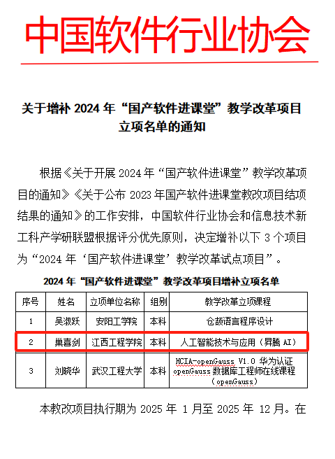 近日,江西工程学院在“国产软件进课堂”领域传来喜讯,两项课程成功获批2024年“国产软件进课堂”教学改革项目,这不仅彰显了学校在教育教学改革中的积极探索与实践成果,也为学校乃至我国高等教育事业和软件产业发展注入了新的活力。