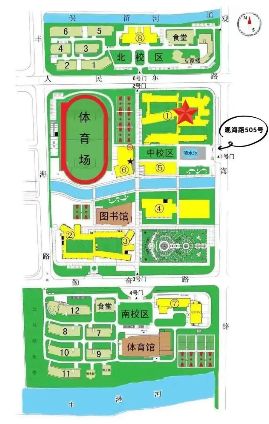 1.考生于开考前30分钟从观海路505号(中校区1号门)校门进入考场。