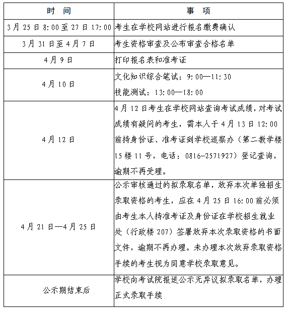 3.成绩查询:4月12日考生在学校招生处网站查询考试成绩。对考试成绩有疑问的考生,需本人于4月13日12:00前持身份证、准考证到学校巡察办(第二教学楼15楼11号,电话:0816-2571927)登记查询,逾期不再受理。