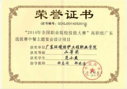 学生获取的国家级职业技能竞赛三等奖2项;国家级大学生职业规划大赛金奖1项;国家级创业大赛二等奖3项,省级创业大赛一等奖1项,三等奖1项;中国-东盟职业院校学生烹饪技能大赛个人一等奖1项、二等奖1项、三等奖6项;省级职业技能竞赛一等奖4项、二等奖17项、三等奖21项。