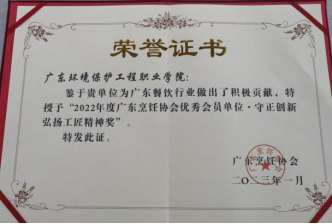 2017年获得广东省烹饪协会颁发的“广东省烹饪教育成就奖”;2018年中国烹饪协会授予我院改革开放40年中国餐饮行业优秀团体--培养人才突出贡献单位奖;2019年获得广东省烹饪协会颁发中华人民共和国“建国七十周年广东优秀餐饮教育奖”;2023年被广东省烹饪协会授予“守正创新弘扬工匠精神奖”。