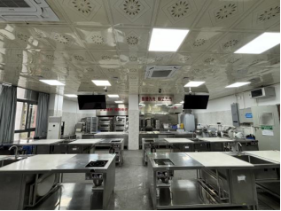 实训教学条件本专业共有五大实训室,实训面积约1200多㎡,已投入约220万元。我校烹饪实训室智能化、数字化、科学化,设备先进、功能齐全,紧跟行业发展和时代潮流,目前配备中西餐实训室、中西点实训室、烹饪基本功实训室、茶艺与酒水实训室和小餐饮服务室,可以同时容纳200人实践教学,满足学生烹饪原材料加工、菜点切配、营养配膳、加热熟制、营养分析、创新菜点制作等实训操作要求,能培养更多符合餐饮、食品、服务产业需要的高素质技能型人才。