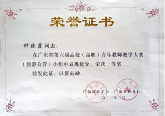 8.2023年钟晓霞老师荣获广东省青年教师教学能力比赛一等奖。