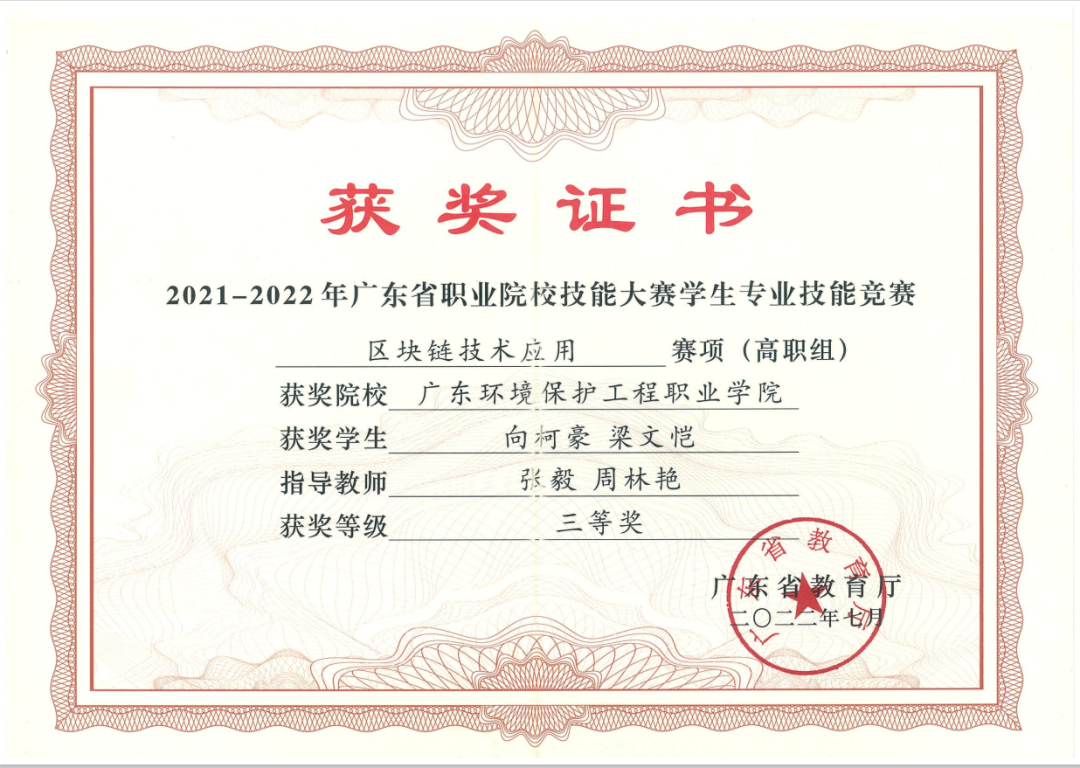 2021-2022年广东省职业院校技能大赛学生专业技能竞赛区块链应用技术应用赛项三等奖