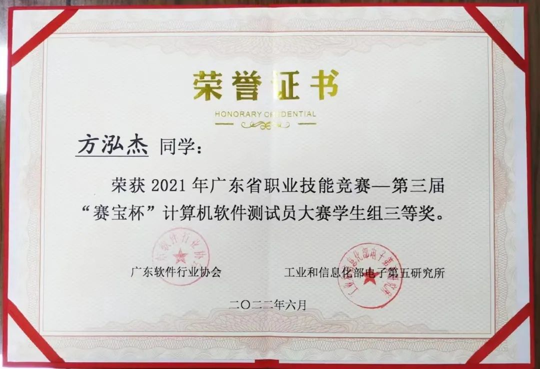 2021年广东省职业技能竞赛第一届第三届“赛宝杯”计算机软件测试员大赛学生组三等奖