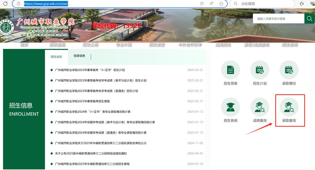 1.录取查询方式:考生可登录我校招生网(https://www.gcp.edu.cn/zsw/)下方的“录取查询”查看录取信息。