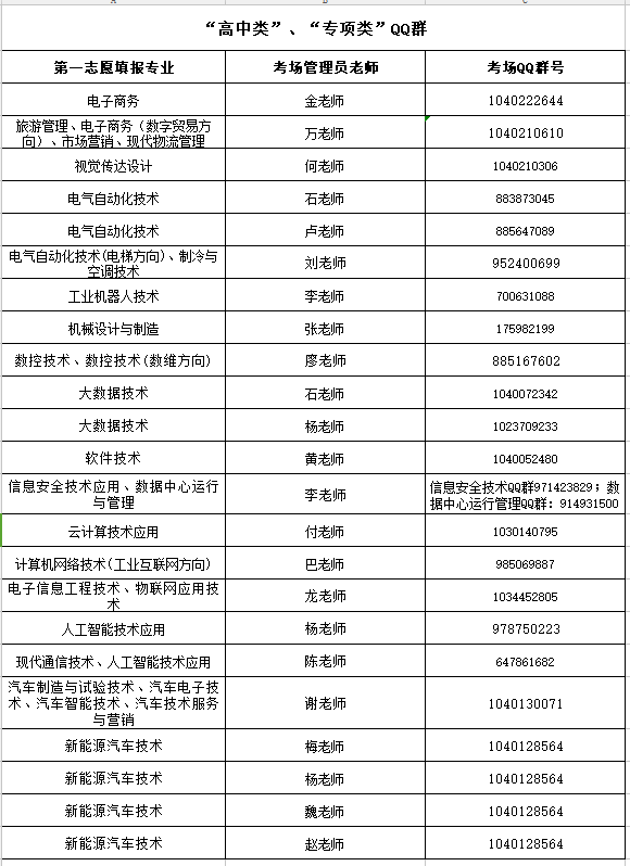 4.加入对应考场QQ群。学校已经提前为大家分配好面试考场,请根据学校发送的短信或电话通知,加入下列对应的考场QQ群。考生由所在考场QQ群里的联络员老师负责进行考试指导服务。