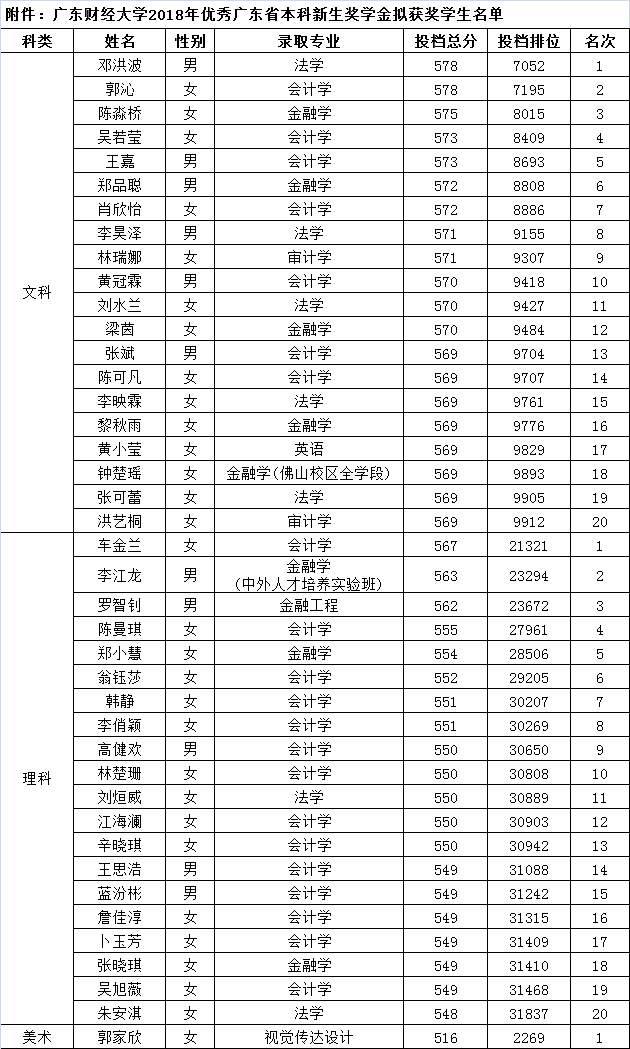 附件:广东财经大学2018年优秀广东省本科新生奖学金拟获奖学生名单