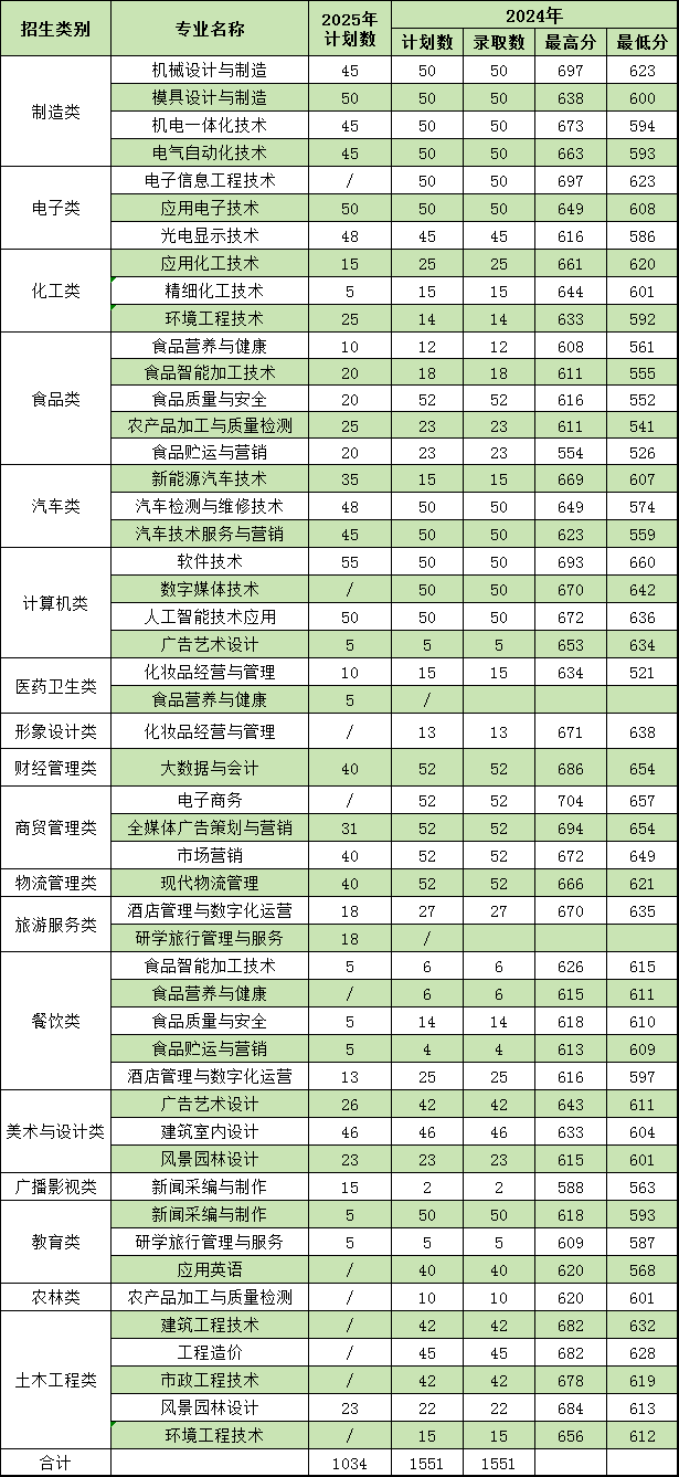 ·漳州职业技术学院高职分类招考· 2025年我校高职分类招考总计划数1800个,其中面向高中生类766个计划,面向中职生类1034个计划。志愿填报代码是4048。欢迎填报我校。面向高中生类面向中职生类备注:最终招生计划以福建省教育考试院公布为准。划斜线的专业未招生。点击下方链接,了解更多内容漳州职业技术学院2025年新专业简介END