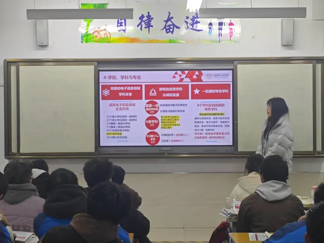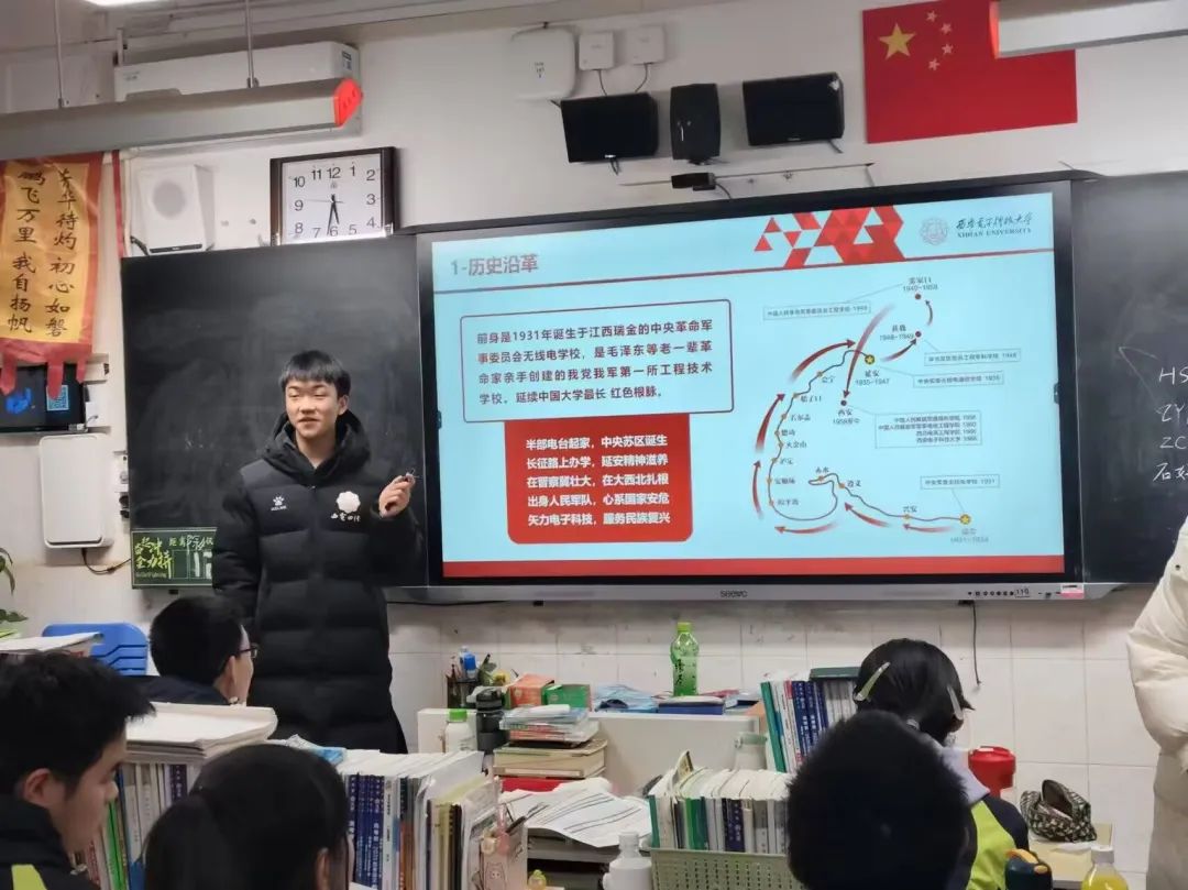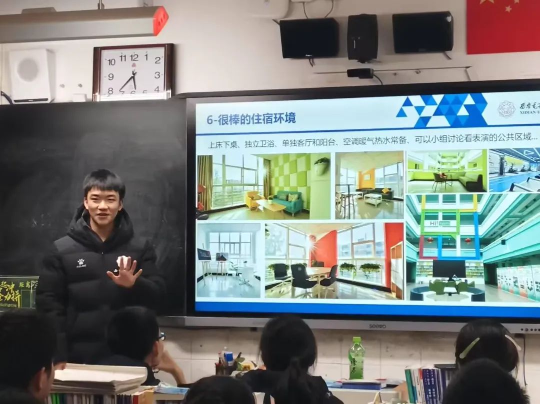 郝同学:此次宣讲不仅是一次母校情结的传递,更让我深刻体会到作为“西电代言人”的责任。通过准备资料和现场互动,我进一步理解了西电“厚德求真、励学笃行”的校训内涵,也在实践中提升了沟通与表达能力。看到学弟学妹们眼中闪烁的向往,我更加坚信,西电的科技之光与红色精神将激励更多学子勇攀高峰,而我也将继续肩负使命,为学校代言,为梦想助力!