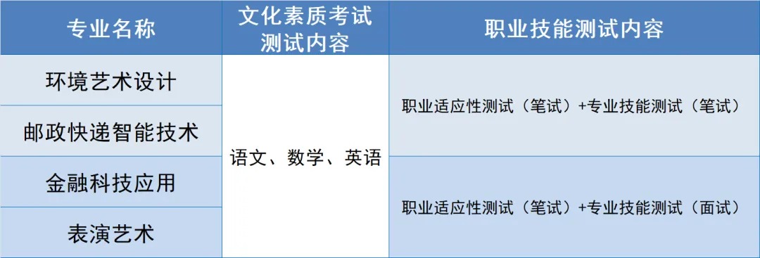 2.考试总分:400分(文化素质考试200分+职业技能测试200分)。其中文化素质考试科目包括语文80分,数学80分,英语40分),职业技能测试考试科目包括职业适应性测试100分,专业技能测试100分)。