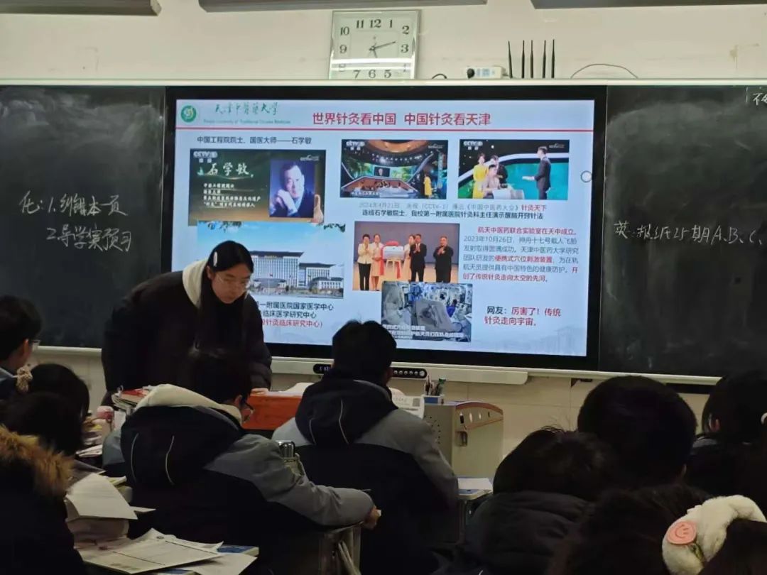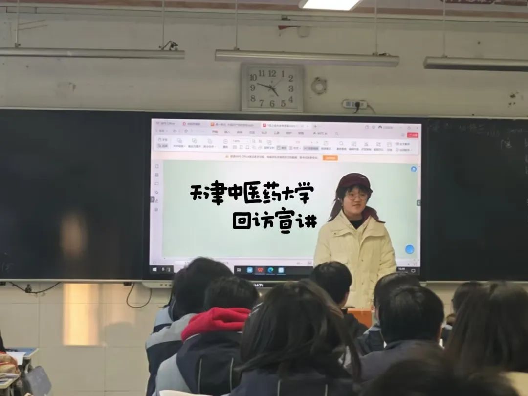 开始后,团队成员在不同班级进行上台宣讲,结合PPT,分享了自己在大学的学习、生活、社团活动等,展示了丰富多彩的大学生活。针对高中学生的学习压力,团队成员分享了高效的学习方法和备考技巧,包括时间管理、心态调整、错题整理等。结合自身经验,团队成员讲解了志愿填报的注意事项,如如何选择专业、如何参考历年分数线等,帮助学弟学妹更好地规划未来。在此过程中,介绍展示了我们天津中医药大学的优势和特色。