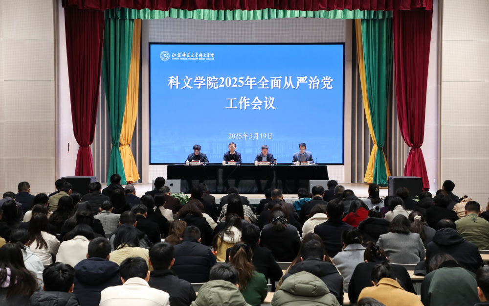 院党委书记张立荣讲话。他指出,在全国上下深入学习贯彻两会精神和启动深入贯彻中央八项规定精神学习教育的重要时刻,召开学院2025年全面从严治党工作会议,既是对党中央全面从严治党战略部署的坚决贯彻,也是深入落实学校全面从严治党会议精神的工作要求,更是学院以自我革命精神推进平安、美丽、幸福、魅力科文建设和事业高质量发展的迫切需求,体现了学院驰而不息推进全面从严治党、纠治“四风”的坚强决心。张立荣在回顾2024年全面从严治党工作时指出,学院党委始终把党的政治建设摆在首位,持续强化党风廉政建设,推进全面从严治党向纵深发展,不断巩固“心齐、气顺、风正、劲足”的政治生态,但在压力传导、廉洁教育实效以及作风建设等方面还存在短板弱项。为此,他对2025年加强全面从严治党工作提出具体要求,即重点围绕“153”工作理念推动全面从严治党向基层延伸、向纵深发展。“1”就是“要干事”,要立起“想干事”的思想坐标、锤炼“会干事”的能力本领、营造“干成事”的良好氛围。“5”是指“5有”。一是党员干部要“心里有数”,即常怀政治清醒之志,深学细悟习近平新时代中国特色社会主义思想,将党的二十大、二十届二中、三中全会精神转化为干事创业的“坐标系”,以理论清醒筑牢信仰根基;二是要“眼里有光”,即永葆监督执纪之锐,紧盯重点领域、关键环节,以“风腐同查同治”机制破除利益藩篱,让纪律利剑始终高悬;三是要“肩上有责”,即勇扛管党治党之担,细化全面从严治党主体责任清单,把该扛的责任扛起来,通过常态化教育,推动“一岗双责”贯通到底;四是要“手里有招”,即善谋标本兼治之策,创新教育方式,各二级党组织要层层传导压力,树牢“严管就是厚爱,提醒就是关心”的理念;五是要“脚下有土”,即厚植为师生务实之风,以担当做事为荣、以为师生服务为乐,让全面从严治党成果浸润育人沃土。“3”是指“3用”。即“用力”压实责任链条,“用心”创新体制机制,“用情”解决师生急难愁盼。