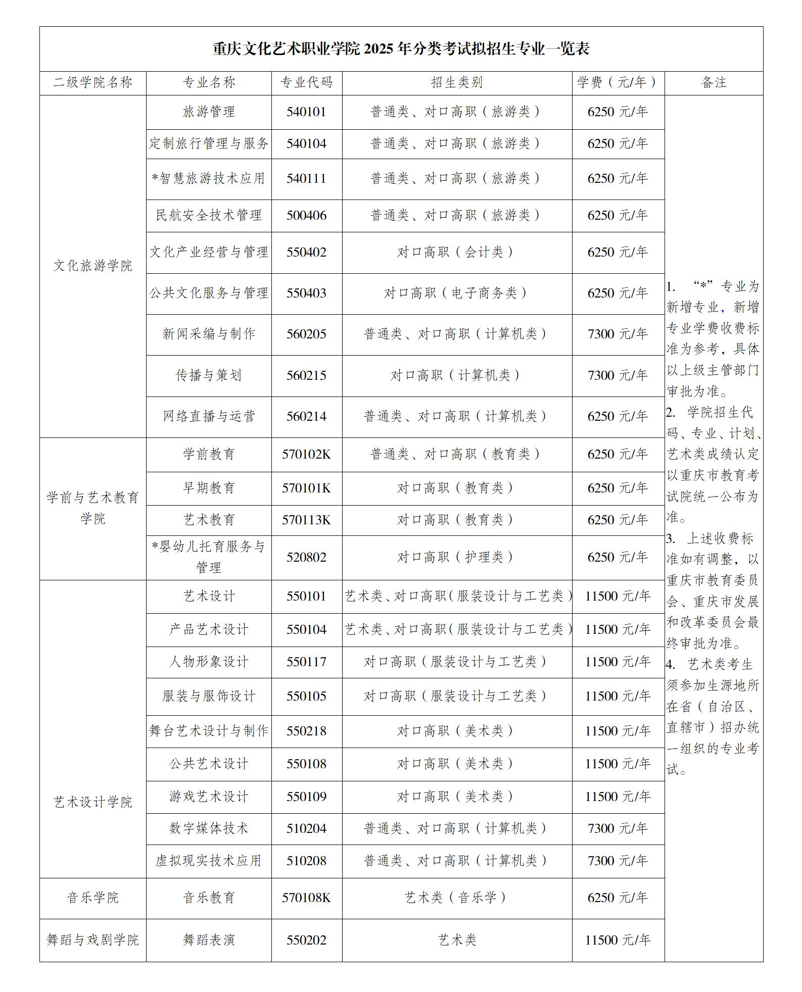 重庆文化艺术职业学院是2013年经重庆市人民政府批准成立、教育部备案的公办综合性高等艺术职业学院。学校位于重庆市巴南区高职城,占地460余亩,在校生人数7000余人,教职工400余人。学校依照“依托文化、围绕舞台、产教融合、协同创新”的办学思路,坚守“厚德博艺、真诚求索”校训,明确“立足重庆、传承文化、服务文旅融合发展”的办学定位,坚持“一切为了教学、一切为了学生”办学理念,确立“打造特色鲜明、办学严谨、知行合一、求实创新的文化艺术人才培养高地”的办学目标,紧紧围绕立德树人的根本任务,依照高等教育办学规律、按照职业教育要求、突出艺术人才培养特性,培养具有“舞台表演力、艺术原创力、文化传承力、服务实践力”的德智体美劳全面发展高素质技能技艺型文化艺术人才。2021年,学校成功入选“重庆市高水平专业群建设单位”;2023年提档升级为“市级高水平学校培育建设单位”。2019年至今,学校被授予全国高校美育工作先进单位、全国无偿献血促进奖单位、重庆市文明校园、重庆市职业教育特色育人典型学校、重庆市绿色学校建设示范校、重庆市智慧校园建设示范学校、重庆市教育系统法治宣传教育工作先进集体等称号。2019年至2022年,学校连续4年获重庆市文化旅游委系统目标管理绩效考核“优秀”。