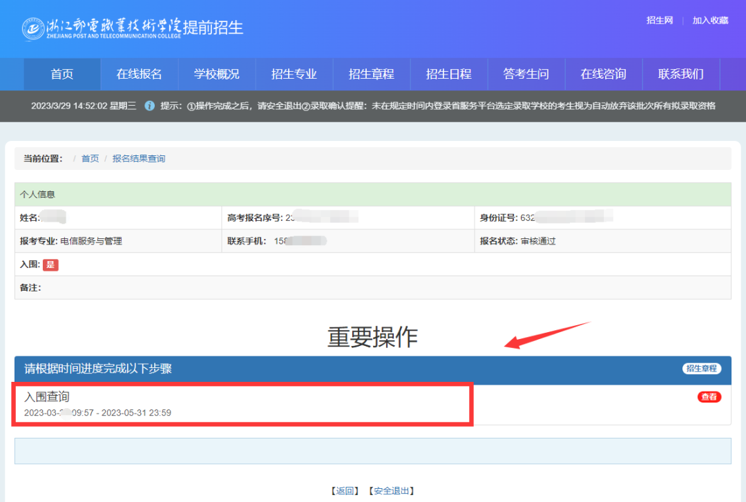 入围考生可登录我校高职提前招生系统,进入网上确认及缴费流程。