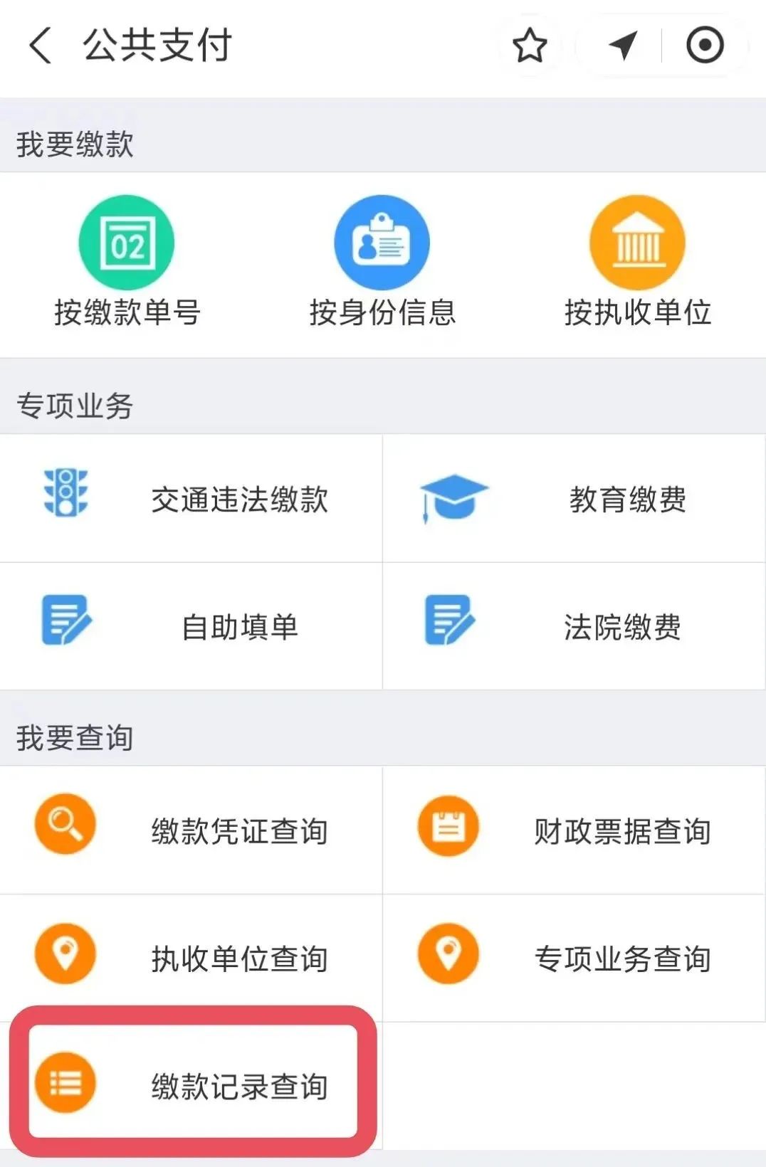 (3)考生缴费后,如需开具发票,选择“公共支付” 页面中的【缴款记录查询】,点击缴款记录,拖到页面底端点击【查看】,可获取电子发票,学校财务处不再提供纸质发票。